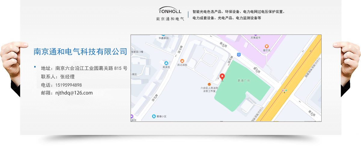 南京通和電氣科技有限公司是致力于研發(fā)、 生產防雷產品的科技型企業(yè)。公司集研發(fā)、生產、銷售、服務為一體,目前主要產品為:智能光電色選產品、環(huán)保設備、電力電網過電壓保護裝置。電力成套設備。光電產品、電力監(jiān)測設備等。公司秉承“誠信。創(chuàng)新、和諧。卓越”的經營理念,研發(fā)創(chuàng)新的專業(yè)態(tài)度服務客戶,追求卓越,以其高水準的產品品質和良好的企業(yè)信譽,在發(fā)展進程中得到了社會廣泛認可。